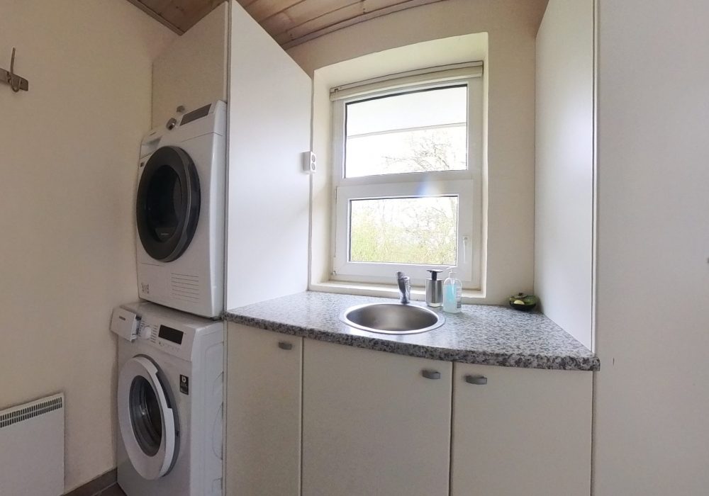 Die Ferienunterkunft ist mit einer Waschmaschine und einem Wäschetrockner ausgestattet. Die Küche bietet einen neuen und geräumigen Kühl-/Gefrierschrank, Cerankochfeld, Abdunsthaube, Backofen, Microwelle und einen Geschirrspüler.